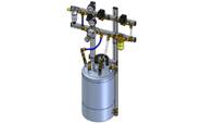 Stationary valve and container groups for operating max. 1 spray head with a maximum of 6 spray nozzles (for example PSM 6-fold). Suitable for all liquids, except paints, resins and adhesives, which reach a maximum viscosity of 2300 mm²/s at 20°C and 500 mm²/s at 40°C. |