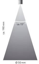 Smallest spray head. Suitable for restricted assembly situations. Flow regulation from the rear. Feed at 90° from rear of spray jet.