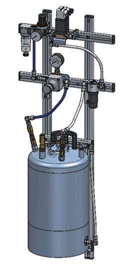 MDJ型微(wēi)量潤滑系統配備一(yī)個10升的不鏽鋼壓力容器,一(yī)個牆挂式安裝支架及一(yī)套閥門組合。其他(tā)控制模塊與TCJ标準型微(wēi)量潤滑系統類似,适用于除油漆、樹(shù)脂和(hé)粘合劑所外(wài)有的液體。