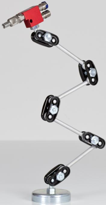 堅固和(hé)穩定的支架可(kě)以将噴頭位置定位精确到一(yī)毫米以內(nèi)。标配四個活動臂夾,三節活動臂及一(yī)個堅固的磁性底座。在不影響機床走刀的前提下(xià),支架可(kě)牢固的吸附在機床內(nèi)壁上(shàng)(多為(wèi)主軸),通(tōng)過釋放每個活動臂夾上(shàng)的內(nèi)六角螺栓來輕微(wēi)調整噴頭方向,達到各類加工(gōng)所需的有效潤滑。 |