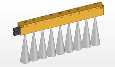 圖4:噴頭組延伸到內(nèi)部對模具或輸送帶實時(shí)潤滑