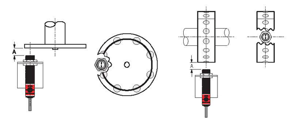 将脈沖磁盤或者拼合環安裝在軸上(shàng),将ST420固定并使之與磁極中心對齊如(rú)圖所示