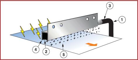 屏蔽電源線(1)将5KV電源輸出傳送到每個電容耦合不鏽鋼離子發生器點(2)的離子棒上(shàng).內(nèi)置接地(dì)線(3)連接離子棒産生放電路徑從(cóng)發射器杆到離子棒上(shàng),(4)發射器在兩端在氣體和(hé)周圍空氣中放電,這(zhè)樣會産生大量的正極和(hé)負極靜電(5).如(rú)果物(wù)體表面帶有負電荷,它會從(cóng)離子棒那(nà)吸引正離子中和(hé)靜電.如(rú)果物(wù)體表面帶有正電荷,它會從(cóng)離子棒那(nà)吸引負離子來中和(hé)靜電,達到離子平衡。 |