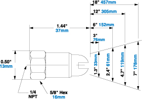 沖擊力在離目标物(wù) 12" (305mm) 處測得。噪音水平在 3´ (914mm)處測得。所有數(shù)據均在入口壓力為(wèi) 80 PSIG (5.5 BAR)時(shí)測得。
