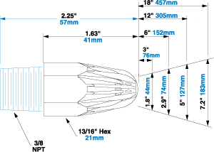 沖擊力在出廠設定為(wèi).008" (.20mm)且離目标物(wù)體12" (305mm)處測得。 噪音水平在 3´ (914mm)處測得。 所有數(shù)據均在入口壓力為(wèi)80PSIG(5.5BAR)時(shí)測得。 | |