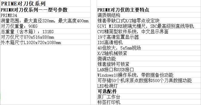 | Prime34對刀儀系列參數(shù): |