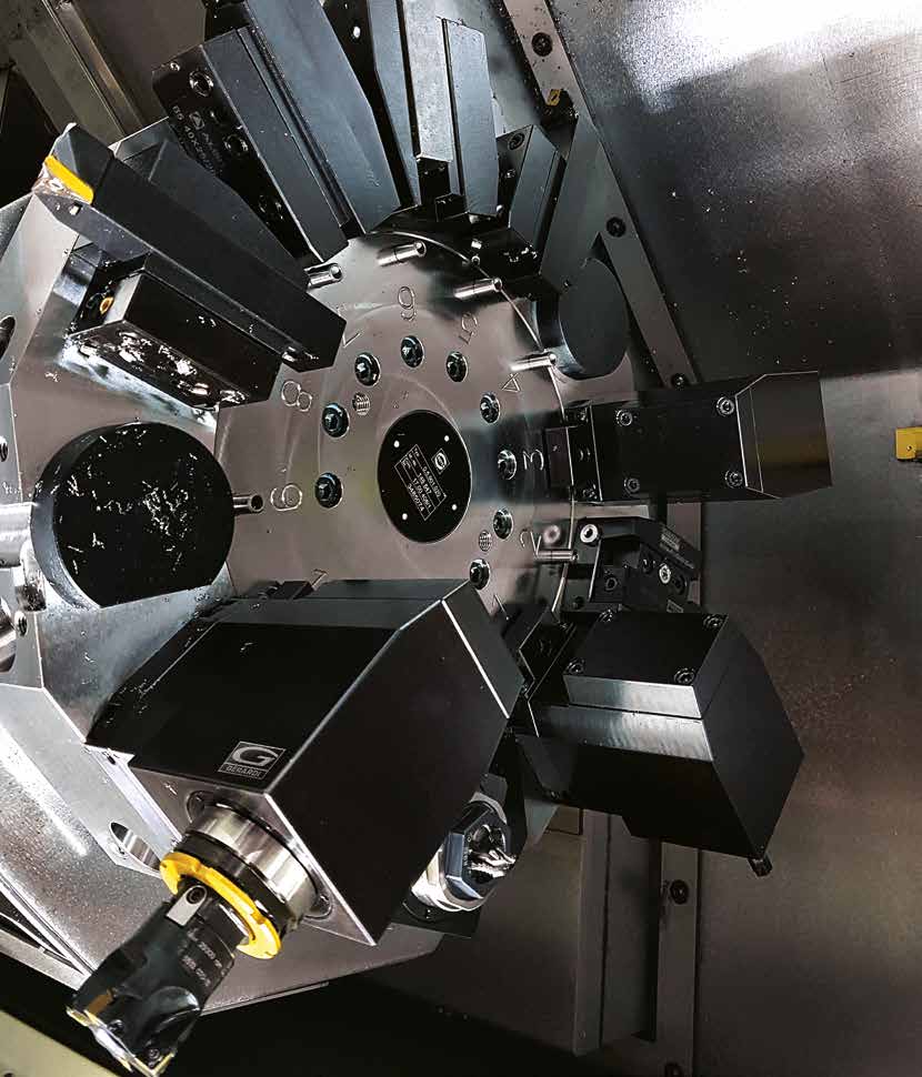 伴随着加工(gōng)件的日益複雜(zá)化、精度等級以及加工(gōng)效率的提高,多軸向、高轉速成為(wèi)工(gōng)具機必備的條件,除了(le)加工(gōng)中心機走向機能(néng)複合化外(wài),車床方面已由早期的卧式車床開(kāi)發出許多新的加工(gōng)形态,例如(rú)雙刀塔、立式車床、倒立車床、以及車銑複合機種,以順應新時(shí)代加工(gōng)方式的需求。其中車銑新概念複合機無疑是一(yī)項新技術(shù)結合的工(gōng)具機傑作(zuò),最大的優點在于可(kě)輕易地(dì)在同一(yī)機台上(shàng)做(zuò)複雜(zá)零件的加工(gōng),可(kě)同時(shí)進行(xíng)車削、鑽孔、攻牙、端面切槽、側面切槽、側面銑削、角度鑽孔、曲線銑削……等等。藉由一(yī)台工(gōng)具機即可(kě)完成一(yī)個零件的所有加工(gōng)流程,大大降低(dī)上(shàng)下(xià)料換機台加工(gōng)的時(shí)間(jiān),以及減少(shǎo)人(rén)為(wèi)公差的機會,達到“Do In One”的加工(gōng)概念。在新世代車銑複合機中,不論是具分度的C軸頭部、副主軸、Y軸等,都(dōu)必須搭配動力刀塔才能(néng)具備車銑複合的功能(néng),因此一(yī)款功能(néng)性佳、精度高的C軸動力刀塔,将使新世代車銑複合機更臻完善。